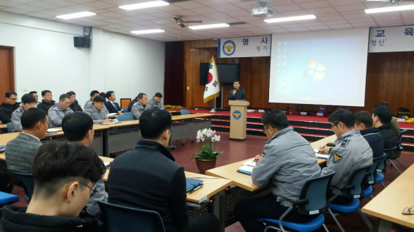 전남 영광경찰서는 지난 18~19일 경찰서 4층 무령마루에서 전 직원을 대상으로 제2회 전국동시조합장 선거를 대비해 공공단체 등 위탁선거에 관한 법률 교육을 실시했다. 사진은 정재윤 서장을 비롯한 전직원들이 선거법 교육을 받는 모습. (사진제공=영광경찰서)