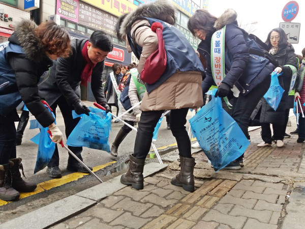 경기 수원시 장안구는 20일 지역내 곳곳에서 '새봄맞이 일제 대청소'를 실시했다. 이날 지역주민, 공무원, 환경관리원 등 600여명이 참여한 가운데 도로변과 구석진 곳 등의 겨우내 쌓인 쓰레기 등을 수거했다. 사진은 참여자들이 도로변에서 쓰레기를 수거하고 있는 모습.(사진제공=수원시청)