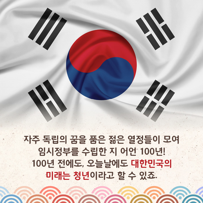 자주 독립의 꿈을 품은 젊은 열정들이 모여 임시정부를 수립한 지 어언 100년!