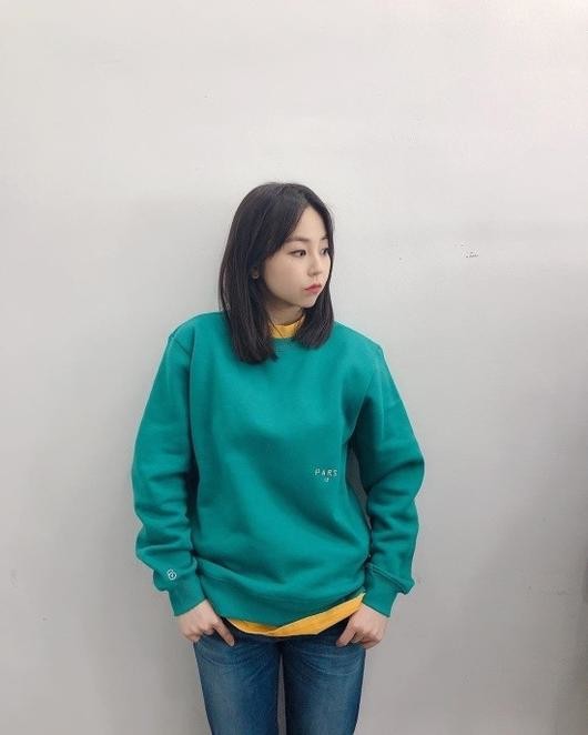 공개된 사진 속에는 흰 벽에 기대 선 안소희가 그린톤의 맨투맨 티셔츠를 입고 포즈를 취하고 있는 모습이 담겨있다.