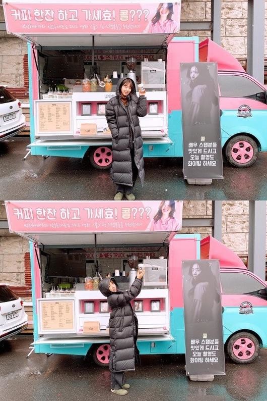 공개된 사진 속 박신혜는 롱패딩을 입고 배우 한효주가 보내준 커피차 앞에서 환한 미소를 짓고 있다. 박신혜는 여전한 여신 미모로 팬들의 시선을 사로잡고 있다.