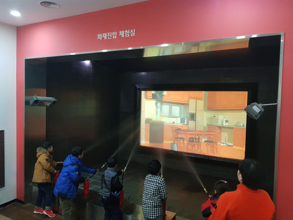 경기 안산시는 26일 시 민방위교육장 재난체험장에서 드림스타트 아동 30명을 대상으로 소방안전 및 응급처치 체험을 진행했다. 이날 아이들은 다양한 재난 대응요령을 직접 체험했다. 사진은 아이들이 소화기를 이용한 화재진압 체험을 하는 모습. (사진제공=안산시청)