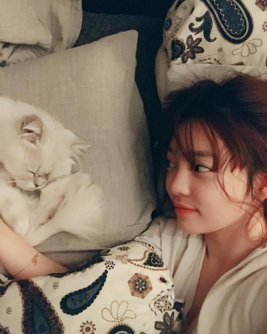 구하라는 2월 17일 개인 인스타그램에 반려묘 차차와 찍은 사진 여러 장을 게재했다.
