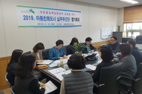 최근 서울 은평구가 교육문화국장실에서 아동친화도시 조성을 위한 실무추진단 정기회의를 열고, 홍보·교육·참여분과를 기존 14개 팀에서 8개 팀으로 조정하고, 2019년 아동친화도시 조성을 위한 3개 분야 협업사업에 대해 논의했다. 사진은 정기회의 진행 모습. (사진제공=은평구청)