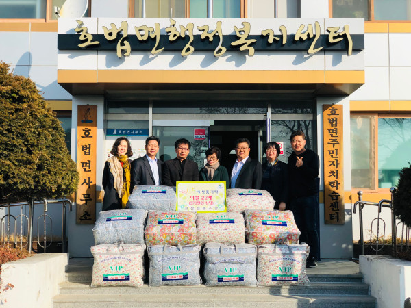 경기 이천시 코잠 협동조합은 26일 호법면 행정복지센터를 방문해 면의 어려운 이웃을 위해 써달라며 370여만원 상당의 목화솜 이불 22채를 전달했다. 사진은 이날 성품 전달식에 참여한 관계자들이 복지센터 앞에서 기념촬영을 하는 모습. (사진제공=이천시청)