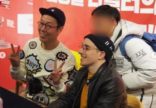 사진에서 김영철은 환하게 웃으며 타일러와 함께 팬들과 인증 사진을 남기고 있다.