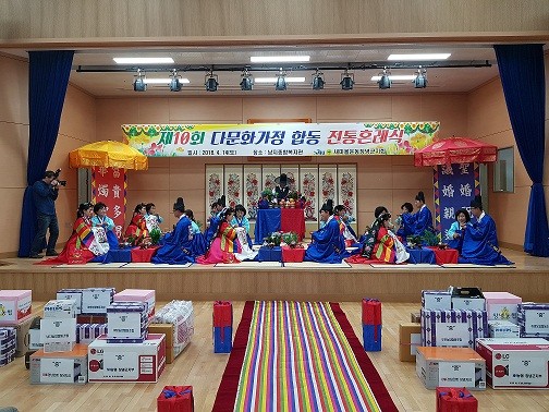 | ▲ ※사진설명: 2018년 다문화가족 합동 전통혼례식이 개최되고 있다. | ||
