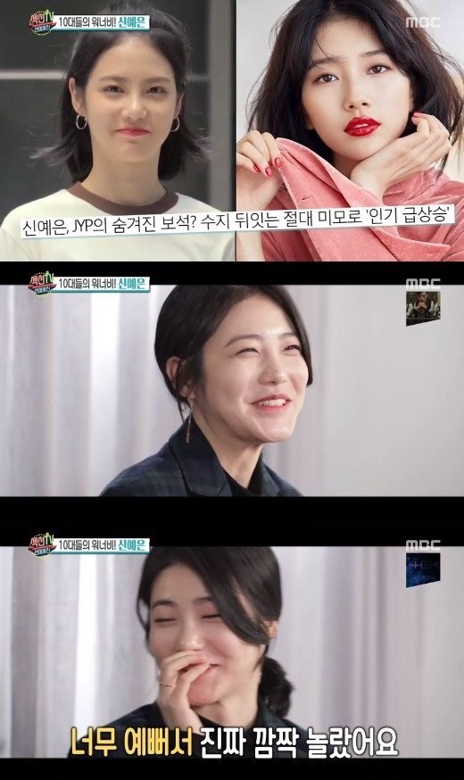 신예은은 "수지 선배님을 샵에서 본 적이 있는데, 너무 예뻐서 깜짝 놀랐다"라며 "그때 난 연습생이었다. 멀리서 바라만 봤다"며 당시 상황을 전했다.