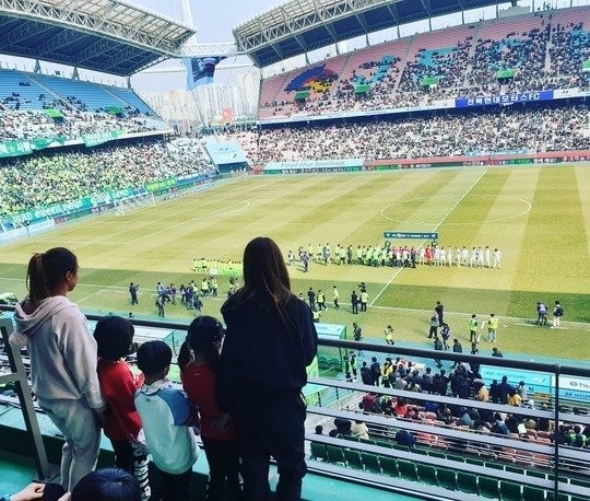 축구선수 이동국 아내 이수진 씨는 3월 1일 자신의 인스타그램에 "전북현대모터스FC. 개막전. 아빠 화이팅. 전북 현대 화이팅. 올해도 우승 고고. 미세먼지 최악"이라는 글과 사진을 게재했다.