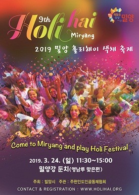 홀리해이 색채 축제는 지난해까지 주한인도인공동체 주최로 여덟 번을 다른 지역에서 개최했고, 이번 행사는 밀양시가 주최하고, 주한인도인공동체가 주관하게 됐다.