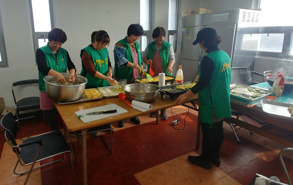 경기 수원시 권선구 서둔동 새마을부녀회는 5일 손수 만든 소고기장조림, 두부조림, 호박전, 버섯전 등 다양한 반찬을 지역내 저소득층 가정에 전달했다. 사진은 새마을부녀회원들이 반찬을 만들고 있는 모습. (사진제공=수원시청)