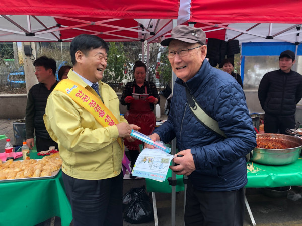 경기 동두천시는 5일 지역내 큰시장 일원에서 제276차 안전점검의 날을 맞아 최용덕 시장, 시청 공무원 및 지역자율방재단, 안전보안관, 의용소방대 등 40여명이 참여한 가운데 안전점검의 날 캠페인을 진행했다. 사진은 캠페인에 참여한 최 시장(왼쪽)이 주민과 함께 담소를 나누고 있는 모습. (사진제공=동두천시청)