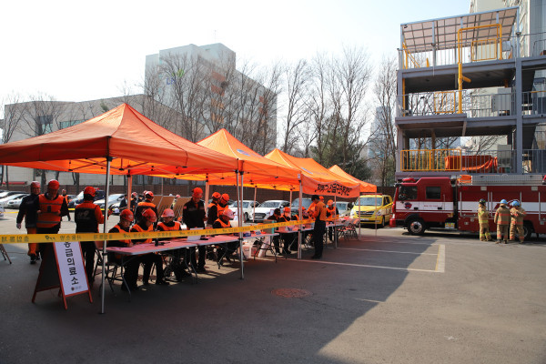 서울 강북소방서가 7일 직원 50여명이 참석한 가운데 각자의 위치에서 기능별 임무 숙지 및 현장 대응 능력 제고를 위한 ‘긴급구조통제단 불시 가동’ 훈련을 실시했다. 사진은 소방대원들이 화재 발생 상황을 가정해 훈련을 진행하는 모습. (사진제공=강북소방서)