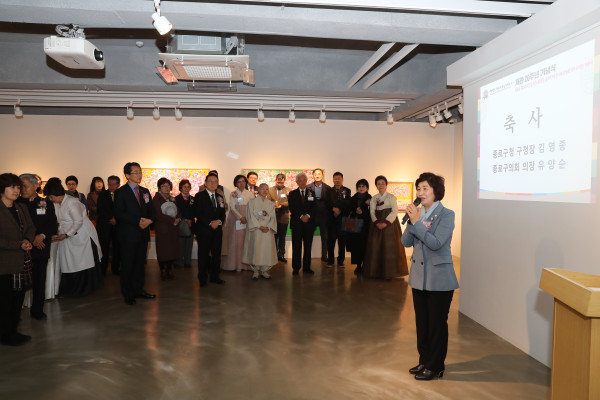 | ▲ 한국전통음식연구소 개관 20주년 기념식에 참석한 유양순 의장이 인사말을 하고 있다. (사진제공=종로구의회) | ||