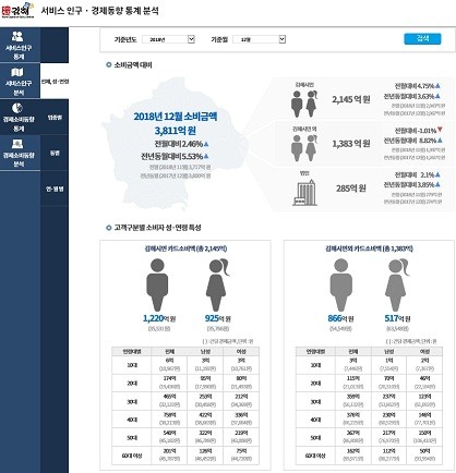 이와 더불어 신한카드 매출데이터를 활용해 2016년부터 2018년 3년간 김해시 소비동향도 분석했다.