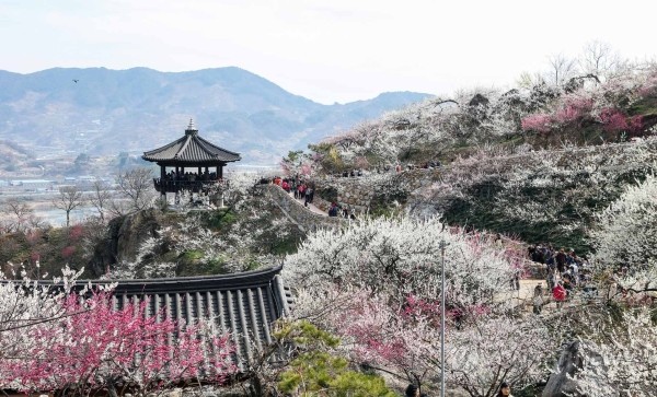9일 오전 전남 광양시 다압면 매화마을에 매화가 만개해 장관을 이루고 있다. 8일 개막한 광양매화축제는 오는 17일까지 열린다.
