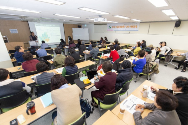 서울 은평구가 오는 4월10일까지 분리배출과 자원 재활용의 중요성 등에 대한 지역 주민들의 인식을 증진을 위한 ‘자원순환활동가 리더 양성과정’을 진행한다. 서울시민대학 은평학습장에서 교육을 받고 있는 주민들의 모습. (사진제공=은평구청)