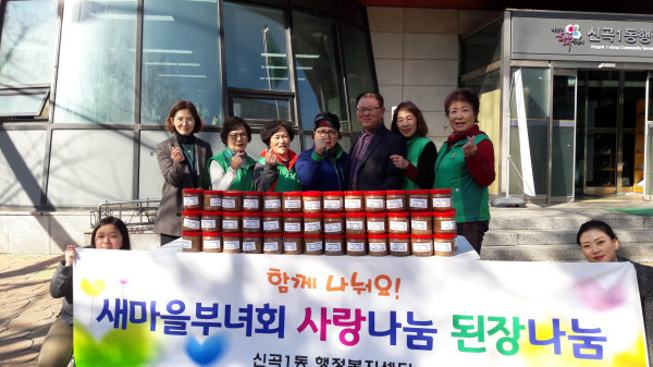 경기 의정부시 신곡1동 새마을부녀회는 지난 8일 직접 담근 된장을 지역내 어려운 이웃에 전달하는 ‘사랑 나눔! 된장 나눔!’ 행사를 개최했다. 사진은 행사에 참여한 관계자들이 기념촬영을 하는 모습. (사진제공=의정부시청)