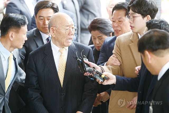 전두환 전 대통령이 5.18 민주화운동 관련 피고인으로 11일 광주지방법원에 들어서며 기자들이 질문하자 “왜 이래”라며 뿌리치고 있다. 전씨는 2017년 출간한 회고록에서 5.18 당시 헬기사격을 목격했다고 증언한 고(故) 조비오 신부를 ‘성직자라는 말이 무색한 파렴치한 거짓말쟁이’라고 비난하고 명예를 훼손한 혐의로 기소됐다.