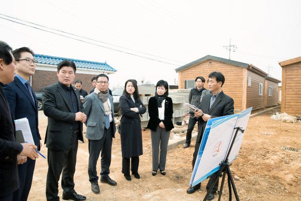 경기 화성시의회 도시건설위원회가 우정읍 일대 수원군공항 이전 예비 후보지 일원에 보상을 노리고 조성된 것으로 의심되는 벌집주택들 현황을 둘러보고 대책을 마련하기 위해 현장방문을 실시했다. 사진은 현장 관계자들과 의견을 나누고 있는 도시건설위원들의 모습. (사진제공=화성시의회)