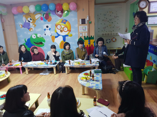 경기 수원시 장안구는 지난 9일 율천동 소재 어린이집에서 2019 열린어린이집 서포터즈 선정자와 선정희망자, 관계자 등이 참석한 가운데 열린어린이집 자조모임을 위한 간담회를 실시했다. 사진은 참여자들이 이야기를 나누고 있는 모습. (사진제공=수원시청)