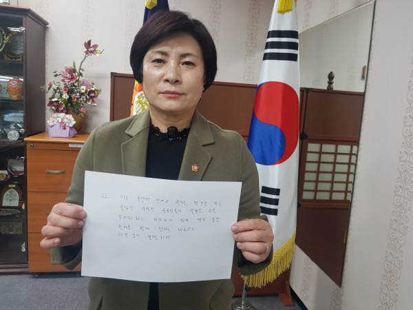 [시민일보=이대우 기자] 이연옥 서울 은평구의장이 3.1운동 100주년을 맞아 진행 중인 ‘독립선언서 필사 챌린지’ 릴레이 캠페인에 동참했다.