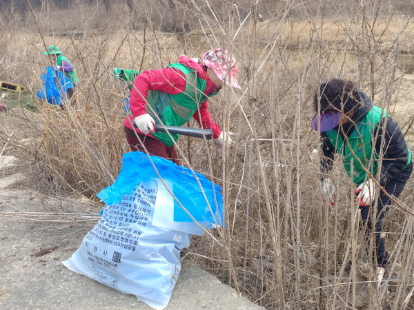 경기 이천시 중리동 새마을남녀협의회는 최근 30여명의 회원이 참여한 가운데 대대적인 봄맞이 환경정화활동을 실시했다. 이날 참여자들은 고담동, 단월동, 대포동 인근 하천변을 따라 각종 쓰레기를 수거했다. 사진은 쓰레기를 수거하는 모습. (사진제공=이천시청)