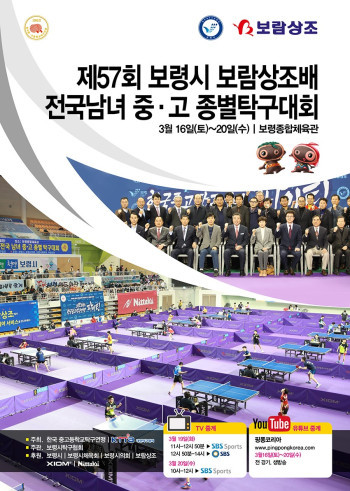 | ▲ 제57회 보령시 보람상조배 전국남녀 중·고 종별탁구대회 공식 포스터 | ||