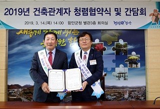 간담회에 앞서 군은 함안지역건축사회와 함께 투명한 건축행정 구현과 청렴문화 정착을 위하여 부정청탁 및 금품수수 금지의 의지를 담은 협약을 체결하였다.