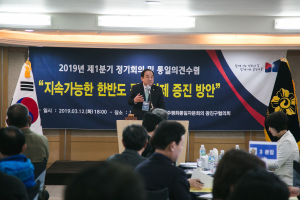 이날 박 의원은 민주평통 제1분기 정기회의의 발표자로 나서 '지속가능한 한반도 평화경제 증진방안'이라는 주제로 현실적인 통일 기반 마련을 위한 국민적 인식 제고와 기반 조성 및 통일을 위해 우리가 앞으로 해야 할 일 등에 대해 발표했다. 이후 구의회 의원 8명이 함께 참여해 분임별 토론을 이어갔다.