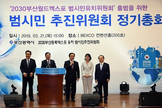 | ▲ 2030 부산등록엑스포 유치 범시민추진위원회 총회 모습 | ||