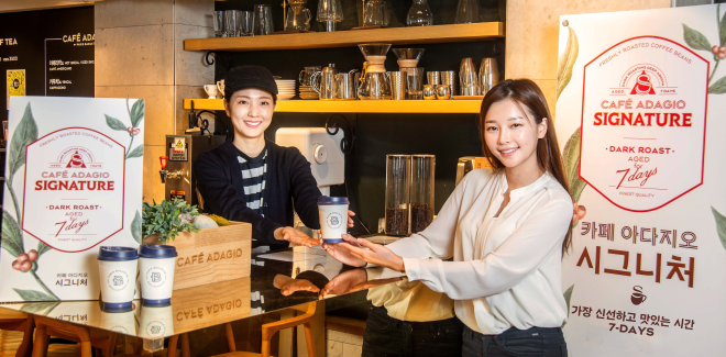 ‘카페 아다지오 시그니처’는 파리바게뜨의 커피 연구원들이 싱글 오리진 생두(브라질, 콜롬비아, 파푸아뉴기니 등)의 장점을 조합해 최적화된 비율로 배합한 커피다.
