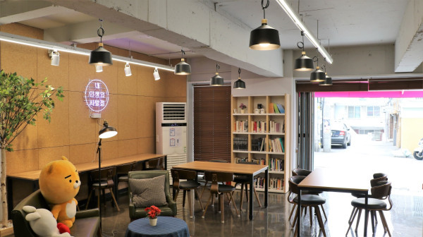 | ▲ 리모델링으로 새단장한 ‘청춘삘딩’ 1층 카페. | ||