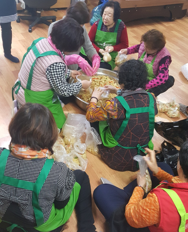 경기 이천시 중리동 자원봉사단은 최근 중리동 지역내 복지사각지대에 놓인 저소득층 42가구에 사랑의 밑반찬을 배달했다. 봉사단은 매달 둘째, 넷째주에 이 같은 반찬 배달을 실시하고 있다. 사진은 단원들이 전달할 반찬을 직접 만드는 모습. (사진제공=이천시청)