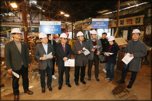박학동 의원 역시 노후된 시장을 살피며 “벽면 균열과 같이 눈에 보이는 위험성뿐만 아니라 건물 내부의 오래된 가스·전기시설 등으로 인한 화재 역시 큰 재난으로 이어질 수 있다”며 "건물 내부에서 생활하고 있는 주민들과 인근 주민들의 안전을 각별히 신경써달라"고 당부했다.