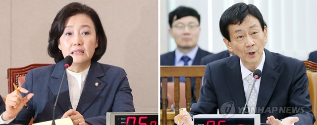 박영선 중소벤처기업부 장관 후보자가 27일 국회 산업통상자원중소벤처기업위원회에서 열린 인사청문회에서 질문에 답하고 있다. 진영 행정안전부 장관 후보자도 이날 국회 행정안전위원회 인사청문회에서 질의에 답하고 있다.