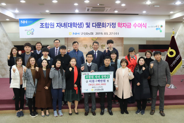 이날 구성농협은 조합원의 학자금 부담을 덜어 주고, 사회에 봉사하는 중추적인 인재로의 성장을 바라는 마음으로 조합원 자녀 27명에게 장학금을 전달했다.