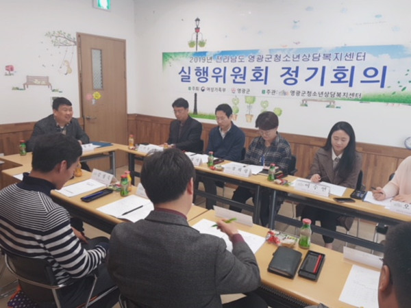 전남 영광군 청소년상담복지센터는 27일 위기청소년의 조기 발견 등을 위한 실행위원회 1차 정기회의를 개최했다. 이번 회의에서는 위기청소년 예방활동 방안과 대안교육위탁사업 등에 대한 논의를 했다. 사진은 회의가 진행되고 있는 모습. (사진제공=영광군청)