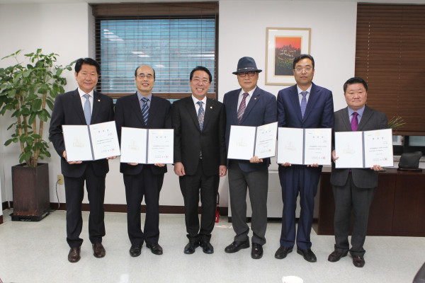| ▲ ‘2018회계연도 결산검사위원 위촉식’ 후 기념촬영한 모습. (왼쪽부터) 양평호 대표위원, 김영진 위원, 임인택 의장, 김영철·김기종·정인태 위원. (사진제공=강동구의회) | ||