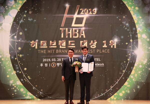 | ▲ 보람그룹 최요엘 이사(우)가 28일 메이필드호텔에서 열린 ’2019 히트브랜드 대상 1위’ 시상식에서 상조 서비스 부문 대상을 수상하고 있다. | ||