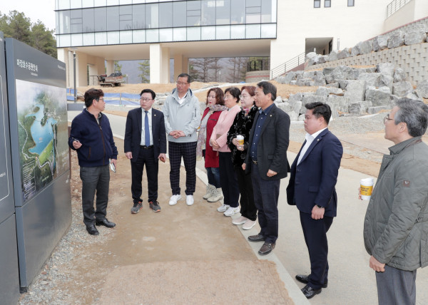 | ▲ 28일 파주시 마장호수에 우수사례 벤치마킹을 나선 광명시의회 조미수 의장과 복지문화건설위원회 소속 의원들이 관계자로부터 설명을 듣고 있다. (사진제공=광명시의회) | ||