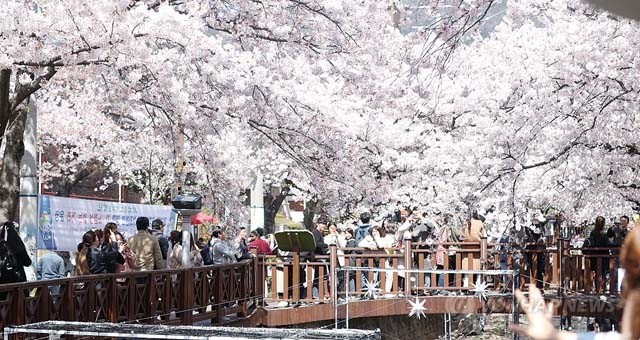 전국 최대 봄꽃 축제인 제57회 진해 군항제 전야제인 31일 오후 경남 창원시 진해구 여좌천 일대에 상춘객의 발길이 이어지고 있다.