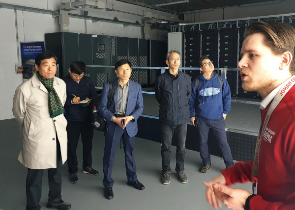 윤화섭 경기 안산시장은 최근 스마트 도시 실현을 목표로 네덜란드 암스테르담에 위치한 요한 크루이프 아레나를 방문해 스마트 기술을 구현하고 있는 첨단 축구 경기장을 견학했다. 사진은 윤 시장(왼쪽)이 축구장 관계자의 설명을 듣고 있는 모습. (사진제공=안산시청)