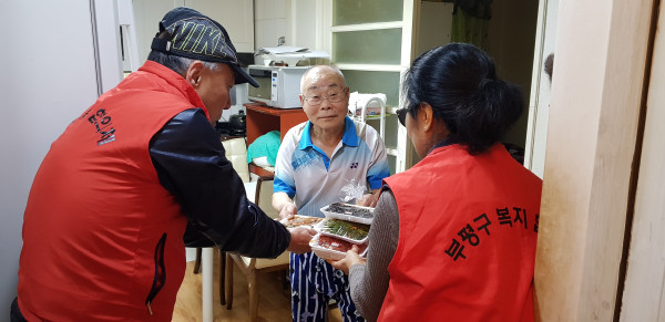 | ▲ 홀몸노인 가구에 방문해 밑반찬을 전달하는 모습. (사진제공=부평구청) | ||