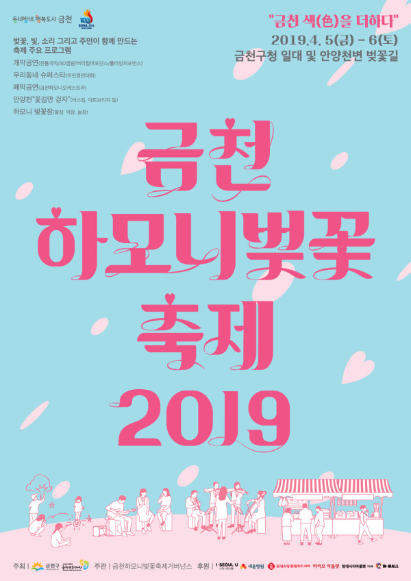 [시민일보=여영준 기자] 서울 금천구(구청장 유성훈)가 오는 5~6일 양일간 금천구청 및 안양천 일대에서 제15회 ‘금천하모니벚꽃축제 2019’를 개최한다.