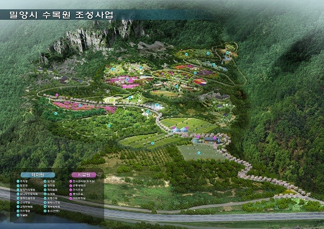 사업비 57억 원을 투입하는 수목원에는 재배묘포장(묘종을 육모), 증식온실, 전시온실, 곤충생태원, 밀양특화테마, 화목테마, 용소 등이 들어선다.