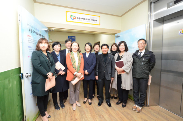 먼저 행정복지위원회는 구민을 위한 문화기반시설이자 문화예술인들의 활동공간인 부평아트센터와 다문화가족 등을 지원하는 부평구 다문화가족지원센터를 방문해 시설현황과 운영사항 전반에 대한 설명을 듣고 현안사항을 청취하는 현장방문을 실시했다.