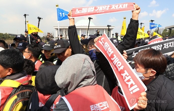 이어 “민주노총이 결사적으로 저지하려는 법안은 최저임금 개편, 탄력근로제”라며 “52시간 근로제 부작용으로 커지고 있는 서민 고통을 보완하기 위한 것이나 민주노총은 오로지 자신들 기득권을 지키기 위해 극렬히 반대하고 있다”고 비판했다.
