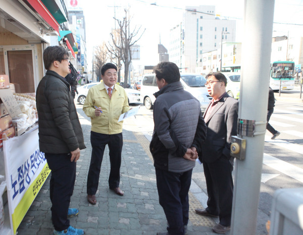 | ▲ 거리가게 운영자들의 의견을 청취하고 있는 홍국표 부의장 모습. (사진제공=도봉구의회) | ||
