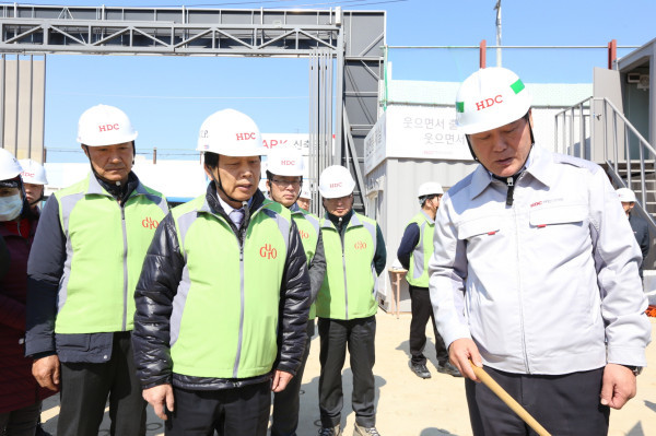 4일 이성 서울 구로구청장이 대형 공사장과 안전취약시설 민·관 합동점검을 실시했다. 사진은 고척동 교정시설 부지 공사현장을 방문한 이 구청장(왼쪽 두 번째)이 관계자로부터 시설에 대한 보고를 받고 있다. (사진제공=구로구청)